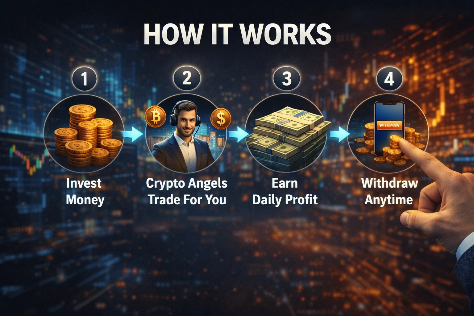 Our mission is simple — to grow your capital safely, transparently, and profitably. With a powerful trading infrastructure, real market exposure, and investor-focused profit sharing model, Crypto Angels provides a secure bridge between global financial markets and everyday investors.
